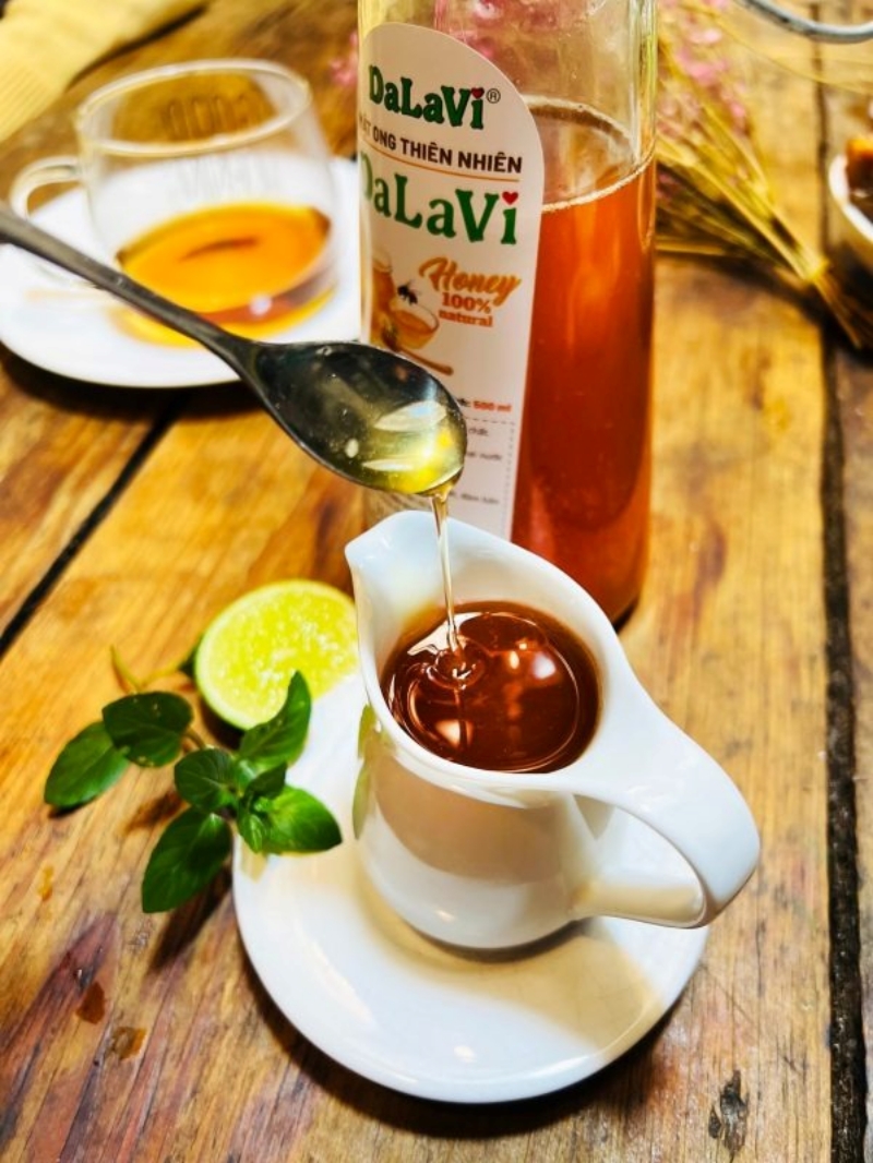 Mật ong của DaLaVi được lấy trực tiếp từ vùng cao nguyên Lâm Đồng, nơi có khí hậu trong lành, đa dạng thảm thực vật, đặc biệt là các loài hoa rừng quý, tạo nên nguồn mật đậm đặc, thơm mát và giữ trọn hương vị tự nhiên. Nhờ điều kiện nuôi ong lý tưởng và kỹ thuật chăm sóc bài bản, mật ong thu được không chỉ dồi dào về lượng mà còn vượt trội về chất giàu enzym, kháng khuẩn mạnh, giúp tăng đề kháng, hỗ trợ tiêu hóa, làm đẹp da và chăm sóc sức khỏe toàn diện.