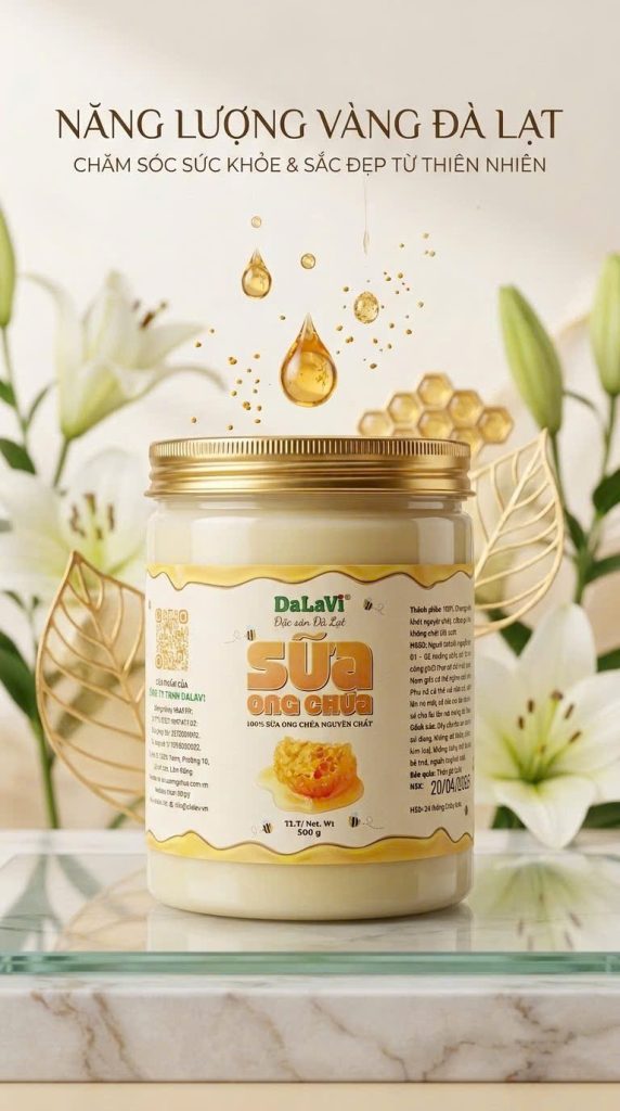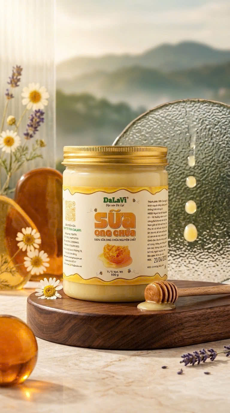 - Thành phần: 100% sữa ong chúa nguyên chất, không phụ gia, không chất bảo quản